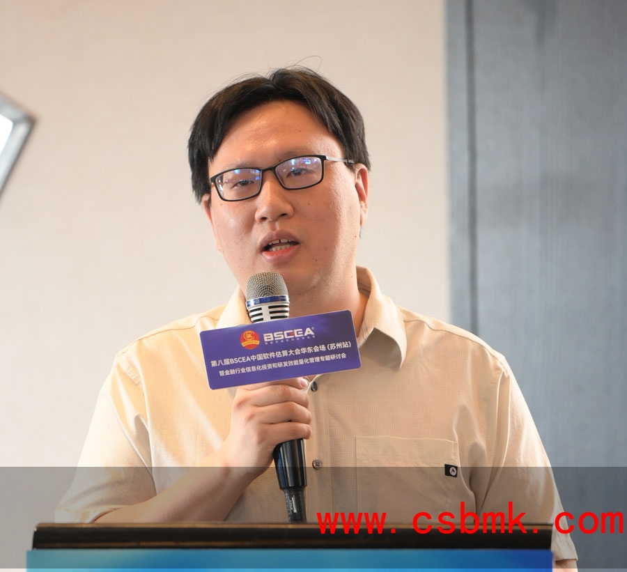 中國郵政儲蓄銀行信息科技部主管何弦發(fā)表了主題為“商業(yè)銀行信息化工程預(yù)算實踐分享”的演講。演講中介紹了軟件成本評估的發(fā)展歷程:2014年及以前采用模糊的市場詢價和專家經(jīng)驗法;2015年至2018年引入并基于GB/T 36964-2018逐步完善功能點估算體系,形成行內(nèi)統(tǒng)一共識;2019年至今,結(jié)合本行特點形成了軟件成本評估體系,涵蓋行內(nèi)所有項目。未來,希望進(jìn)一步建立完善的軟件成本度量方法,結(jié)合歷史數(shù)據(jù)建立一套符合實際、科學(xué)客觀的軟件成本度量體系,提高信息化建設(shè)精細(xì)化管理水平。專題研討環(huán)節(jié),各位嘉賓針對郵儲銀行實踐特點和經(jīng)驗展開了熱烈的討論。