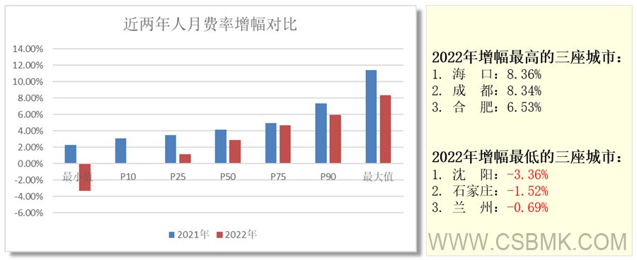 人月費率增幅方面,???、成都、合肥位居前三,沈陽、石家莊、蘭州增幅最低。