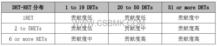 根據(jù)每一個已確認的 ILF 和EIF 的復雜度(DETs 和RETs 數(shù)量),對其進行分類,并賦予未調節(jié)功能點數(shù)值(Unadjusted Function Points,簡稱UFP)的過程,即為確定其貢獻度