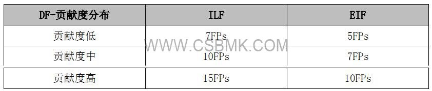 對用戶而言,ILF 與EIF 的業(yè)務意義是完全不同。因此,對于貢獻度相同的 ILF 和EIF,其未調節(jié)功能點值是不同的。