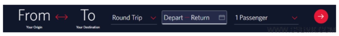 在航空公司預(yù)訂系統(tǒng)航班預(yù)訂流程中,客戶可以輸入搜索條件,如“出發(fā)地”和“目的地”、“預(yù)訂類型(單程、往返或多程)”、“行程日期”和乘客數(shù)量,如圖4所示。