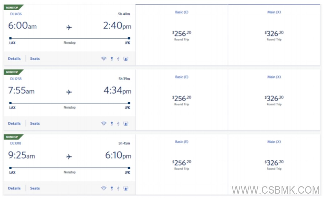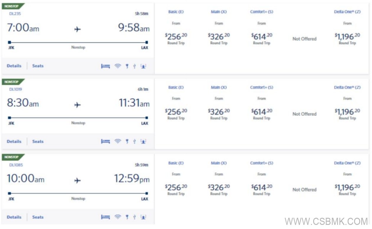 圖 8 航空預(yù)訂系統(tǒng)航班選擇列表