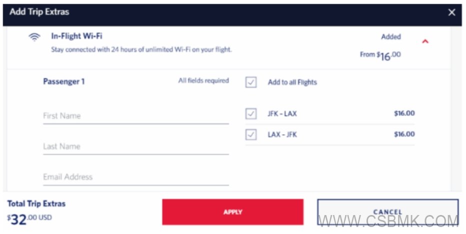 注:以下截圖僅用于說明目的,不代表任何航空公司真實完整的預(yù)訂流程。