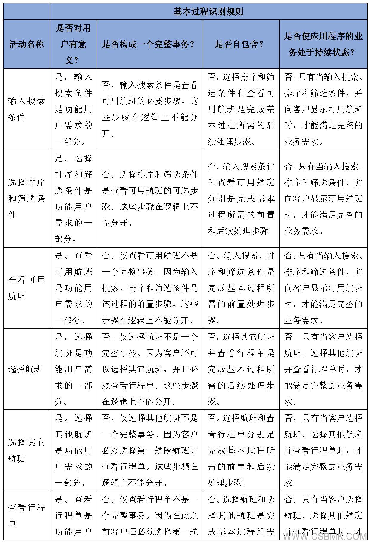 - “在業(yè)務(wù)過程模型中,確定哪些活動代表功能用戶需求,并將每個活動組合或分解為滿足基本過程條件的最小活動單元”。