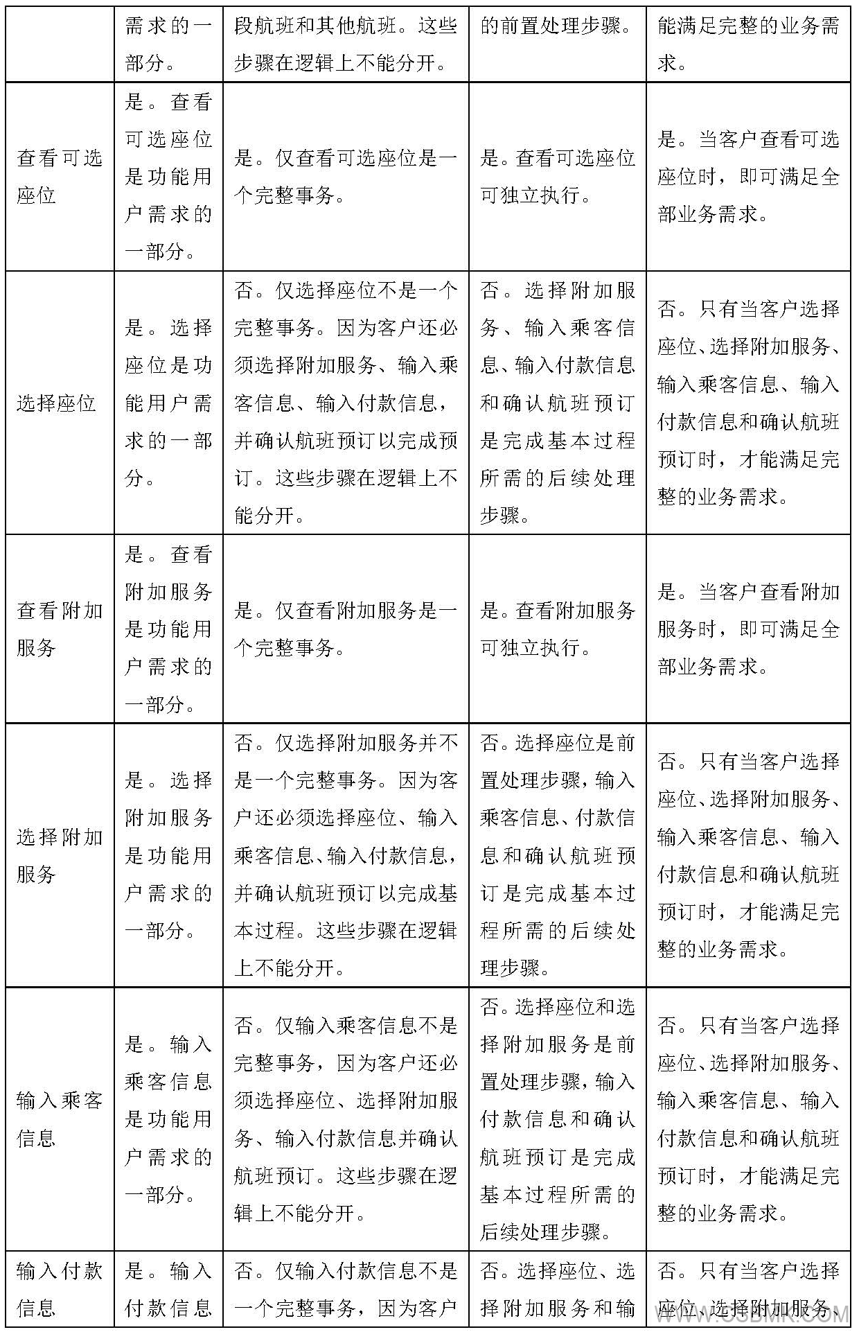 表 7 航空預(yù)訂系統(tǒng)過程活動