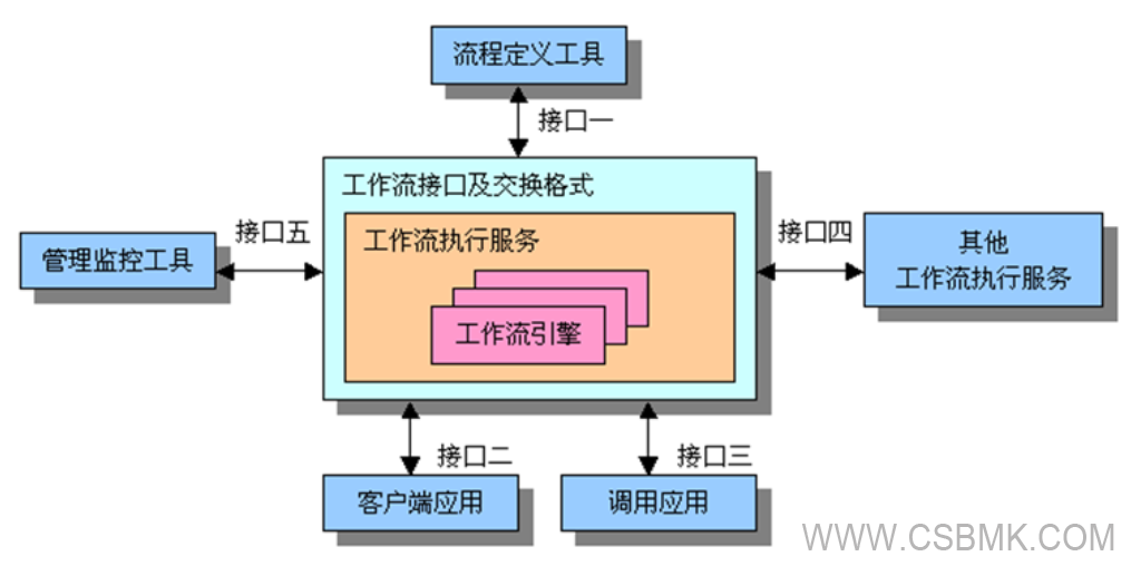 - 流程定義工具:負(fù)責(zé)工作流建模??梢允褂貌煌墓ぞ邅?lái)分析、建模、描述和記錄業(yè)務(wù)流程。接口 1 的標(biāo)準(zhǔn)為 XML 流程定義語(yǔ)言(XPDL)。