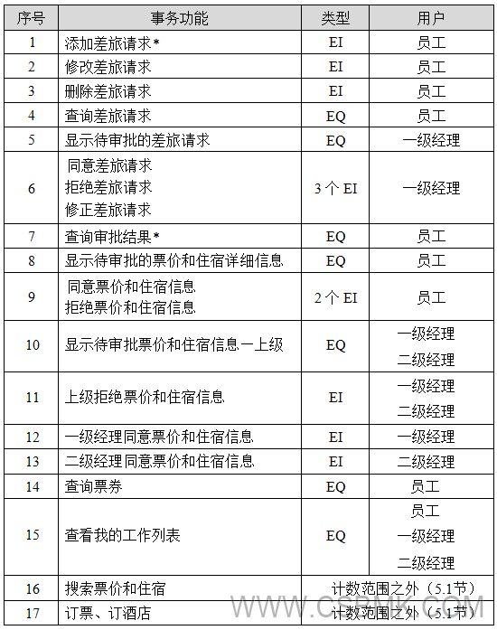 公司領(lǐng)導(dǎo)要求進(jìn)行功能點(diǎn)計(jì)數(shù),通過(guò)該差旅系統(tǒng)的功能規(guī)模來(lái)確定開(kāi)發(fā)此系統(tǒng) v1.0 的工作量。