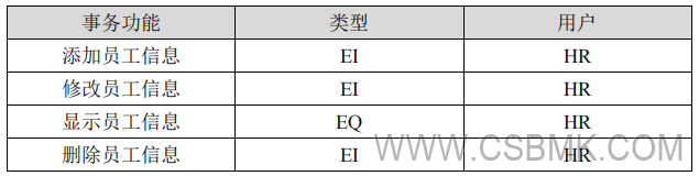 表5為業(yè)務(wù)流程事務(wù)功能的識(shí)別。