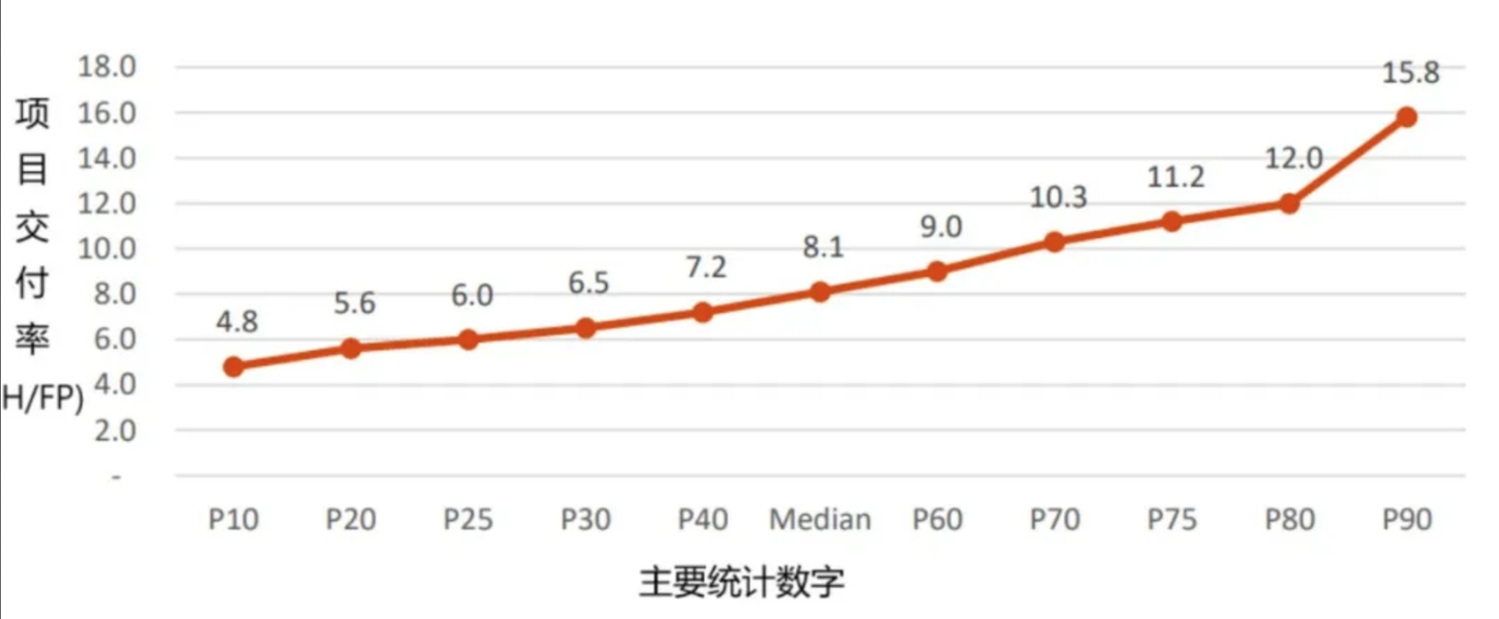 在 ISBSG excel 中篩選相關數據集,數據分布顯示了各個團隊的表現??梢?根據行業(yè)平均水平(中位數)計算績效,每個團隊都可以了解他們在相應指標下與 行業(yè)平均水平的對比。這種方式有助于管理層了解各個團隊的績效表現,并進行有效改進。